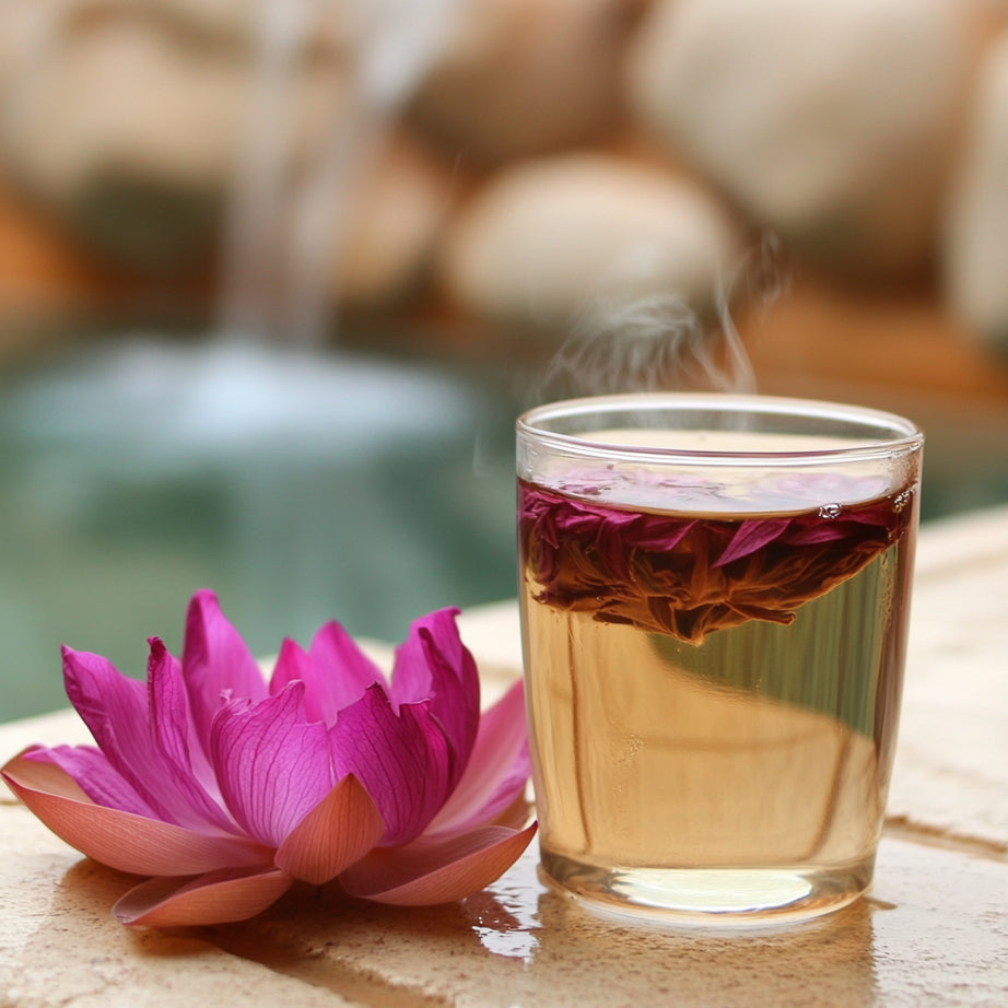 Der Rote Lotus Tee unterstützt nicht nur Entspannung und Stressabbau, sondern bietet auch wertvolle Antioxidantien und entgiftende Eigenschaften für deinen Körper.