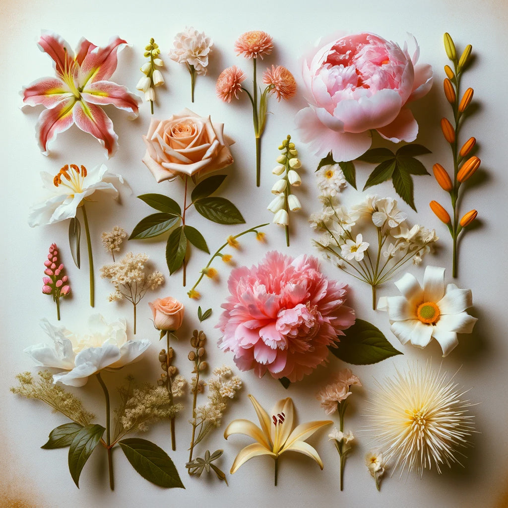 Päonien, Rosen, Bai Ju Hua - Weiße Chrysanthemen, Jasmin, Känguru Blume, Lily