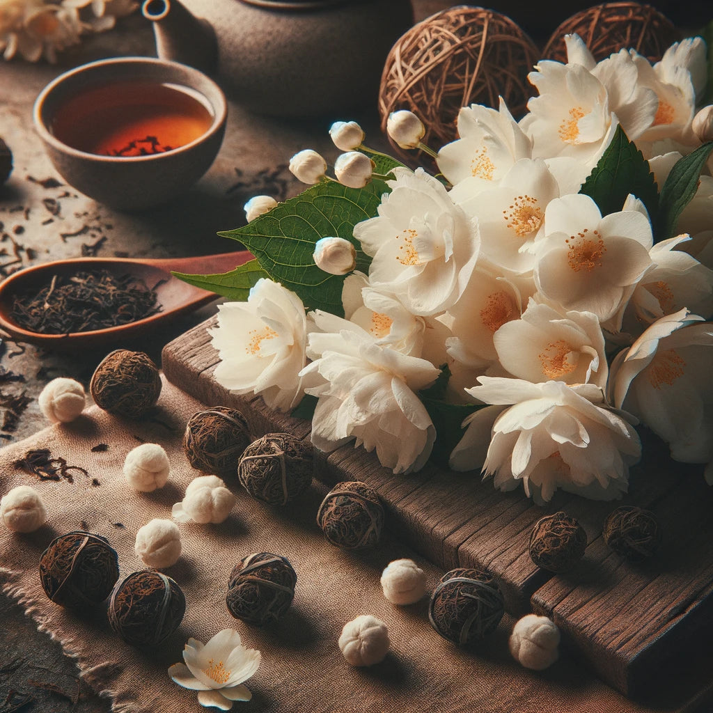 Jasminblüten Tee ist ein exquisites Getränk, das die verführerische Duftnote der Jasminblüten mit dem erfrischenden Geschmack von grünem Tee verbindet. Die zarten Blüten werden sorgfältig ausgewählt und mit hochwertigem Teeblatt kombiniert, um ein harmonisches und erfrischendes Getränk zu kreieren. Der Jasminblüten Tee von Nusoulia entführt Sie auf eine aromatische Reise, die Ihre Sinne belebt und Ihre Stimmung hebt. Genießen Sie die blumige Pracht des Jasmins in jeder Tasse und lassen Sie sich von seiner sanften und beruhigenden Wirkung verwöhnen. Entdecken Sie die Welt der blumigen Aromen mit dem Jasminblüten Tee von Nusoulia und lassen Sie sich von seiner einzigartigen Schönheit verzaubern.