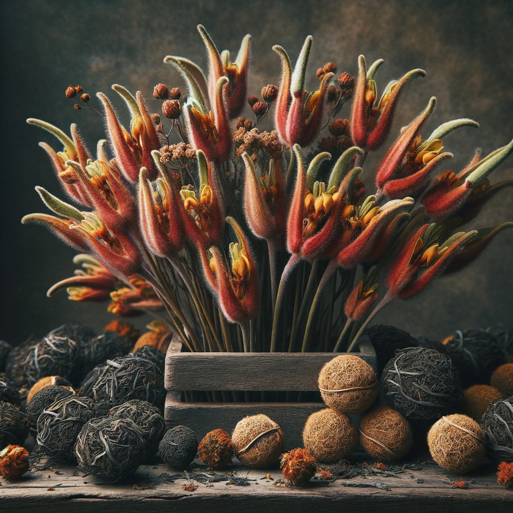 Der Känguru Blumen Tee von Nusoulia ist ein außergewöhnliches Getränk, das die exotische Schönheit der Känguru Blumen in einer Tasse einfängt. Die delikaten Blüten verleihen diesem Tee einen erfrischenden und blumigen Geschmack, der Ihre Sinne belebt und Ihren Gaumen verwöhnt. Mit seiner leuchtend gelben Farbe und seinem sanften Aroma ist der Känguru Blumen Tee eine einladende und erfrischende Wahl für alle Tee-Liebhaber. Genießen Sie die einzigartige Exotik dieses besonderen Tees und lassen Sie sich von seiner erfrischenden und beruhigenden Wirkung verzaubern.