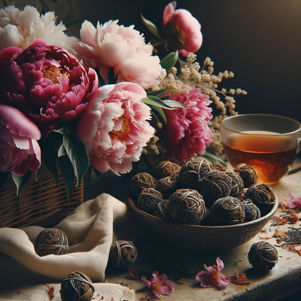 Unser Päonien Tee besteht hauptsächlich aus getrockneten Päonienblüten, die für ihren subtilen und beruhigenden Geschmack bekannt sind.